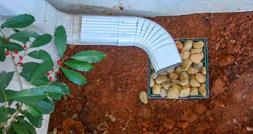 We can also incorporate downspouts to the drainage system, as our standard drainage system begins with no smaller than 6" drainage line.